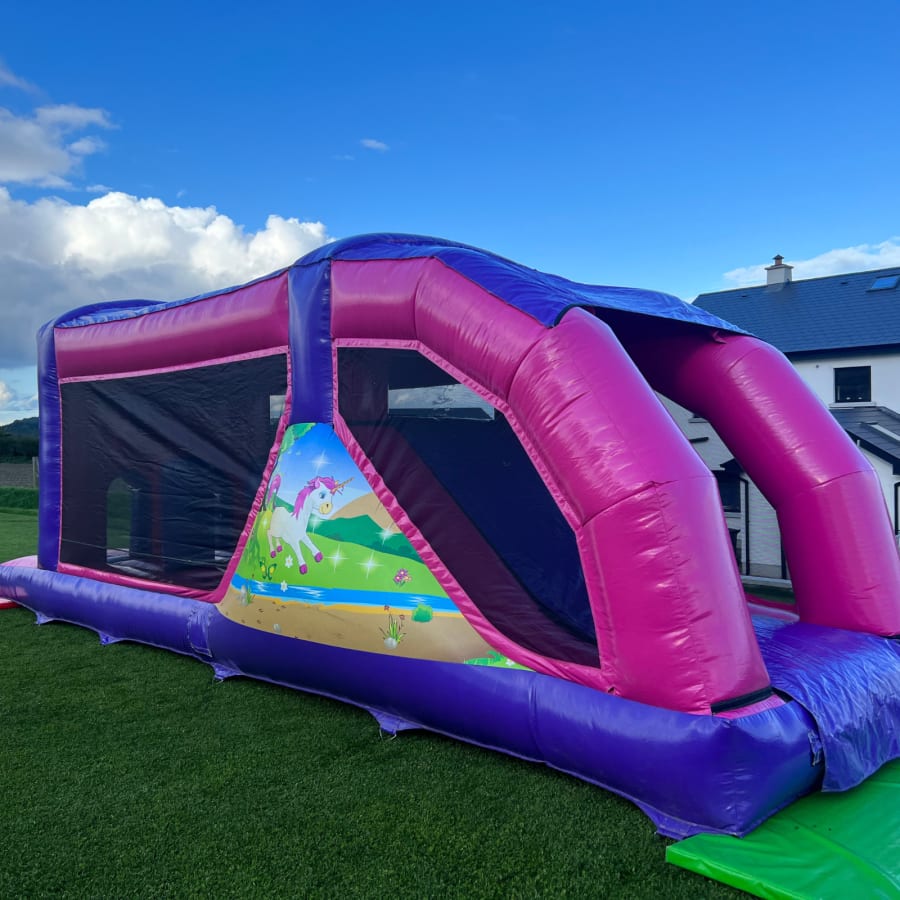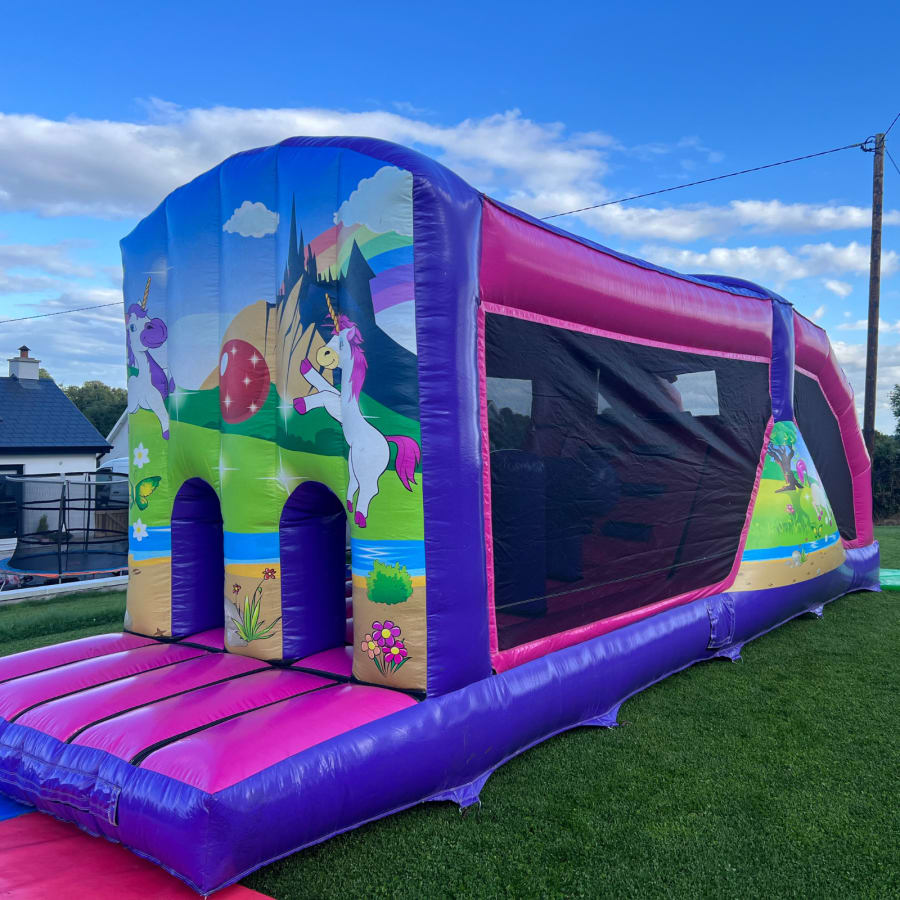This bright pink and purple unicorn theme fun run is always a hit at parties, especially with its fabulous unicorn digital print on the entrance and exterior side walls