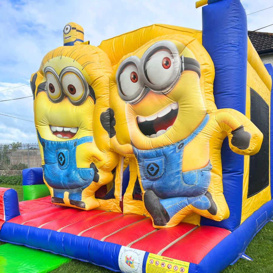 To book the Minions combi unit for public green areas, corporate events, field days etc please call us on 083 0201079, or email info@bouncelandinflatables.ie