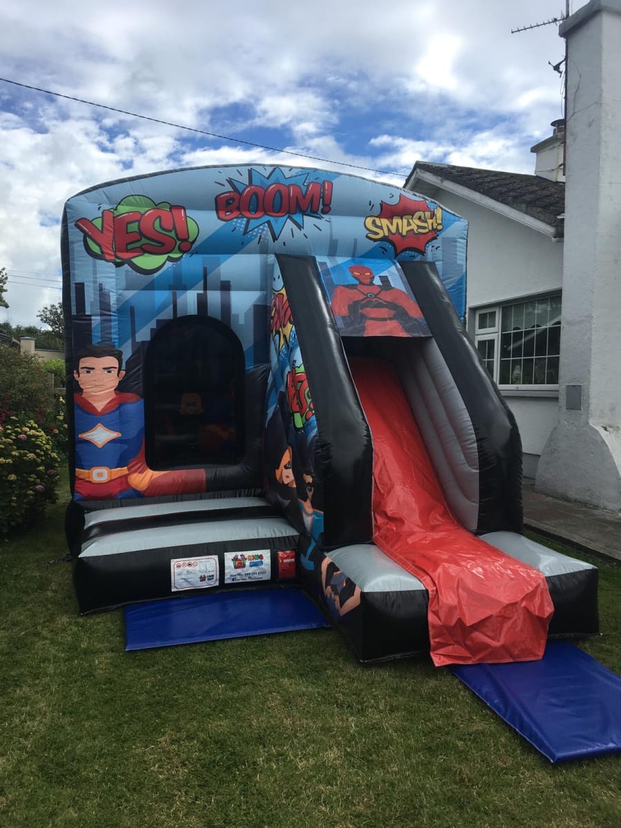 If you have a superman and superwoman in your house then you have made the right stop to bring the superpersons dream a reality. The superhero bouncy castle and slide measures 16ft(L) X 11ft(W). Let them bounce the day away surrounded by all of the superhero and superwomen along with marvel heros. This bouncy castle and slide also has a 4.5ft slide which adds to the excitement of the day.